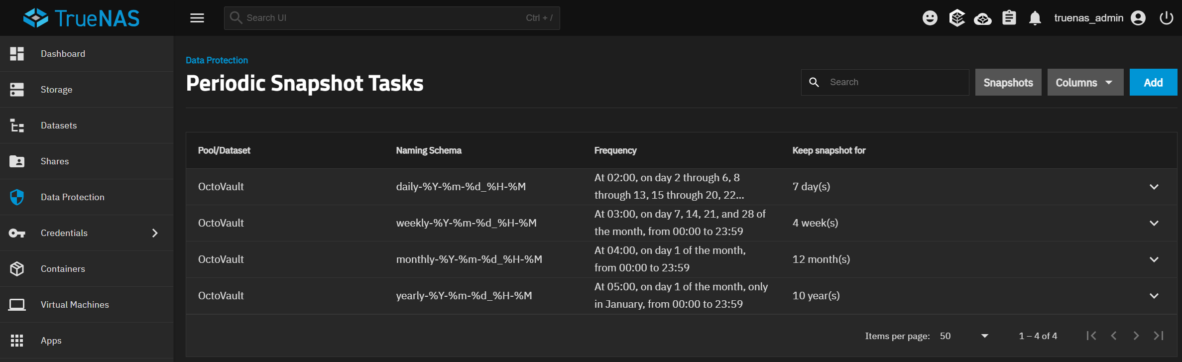 As I said, I am looking to have automated snapshots with hourly, daily, weekly, monthly, and annual schedules, retained for 10 years. This snapshots will be available in TrueNas for restoration, available to sync to off-site locations and also visible in the SMB shares as previous versions.
